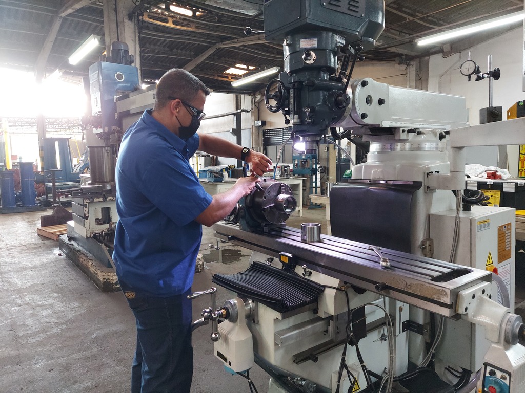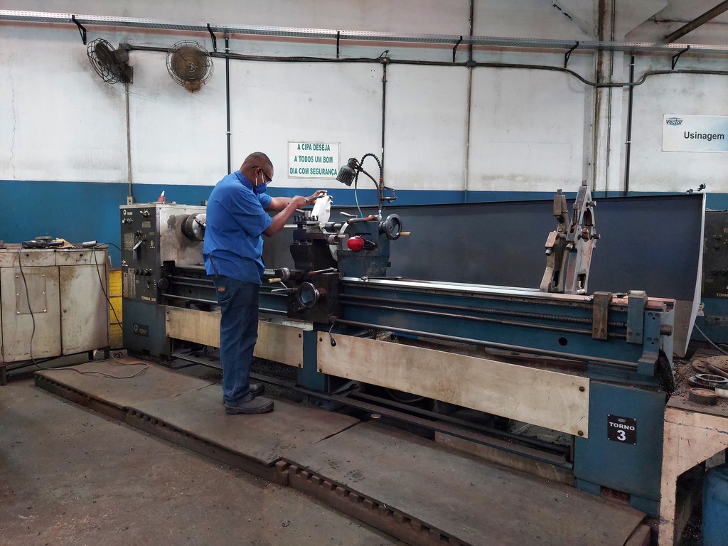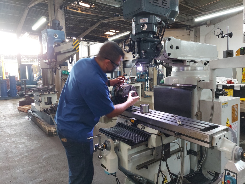 Na área de usinagem são feitos ajustes de equipamentos e fabricação/desenvolvimento de peças mediante desenhos.